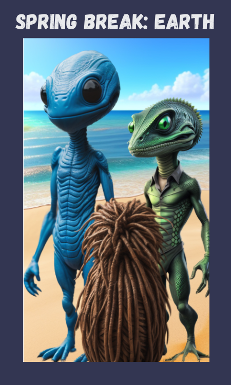 It’s about three alien college students (Jaltoo, Teek, and Farfle) from Intergalactic University come to Earth to study human mating rituals during Spring Break.